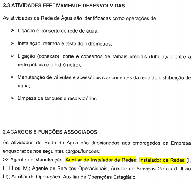 Cargo/Setor: Auxiliar de instalador de rede, instalador de redes I e agente de serviços operacionais/ Distribuição