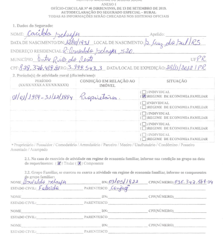Foi apresentada a autodeclaração do segurado especial no evento 7 OUT2: