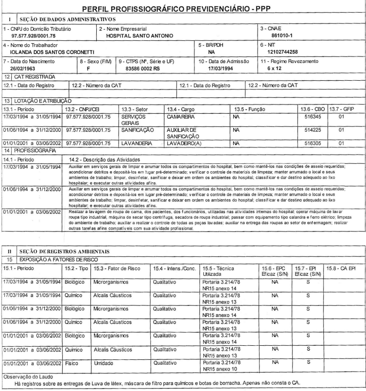 No caso em questão, a autora pleiteou o reconhecimento do período de 14/10/1996 a 03/06/2002 como atividade especial laboral, a qual estava assim detalhada no PPP e na CTPS ():