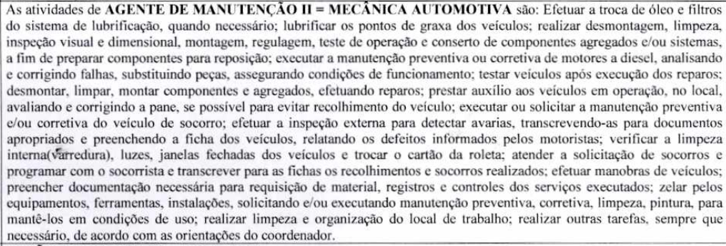 | Cargo/Setor | agente de manutenção II - mecânica veicular / unidade de oficina 03![]() |