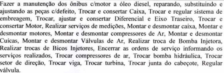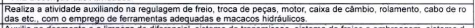 | Cargo/Setor | 16/05/2005 a 31/08/2005 - auxiliar de mecânico / manutenção 01/09/2005 a 30/04/2006 - auxiliar de mecânico II / manutenção