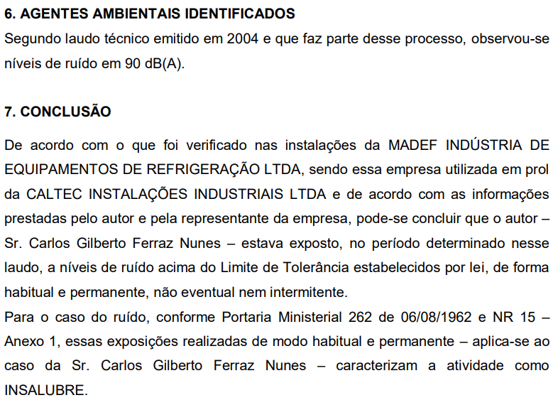 Realizada a perícia na empresa MADEF S.A INDÚSTRIA E COMÉRCIO, foi acostado o laudo perícial (ev. 62, LAUDOPERIC1), no qual houve a conclusão de que as atividades desenvolvidas pelo autor eram condições especiais, pois estava exposto a ruído em limite acima do tolerado para os períodos, conforme trecho que segue: