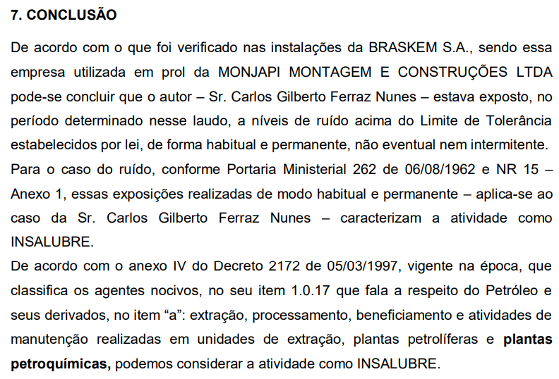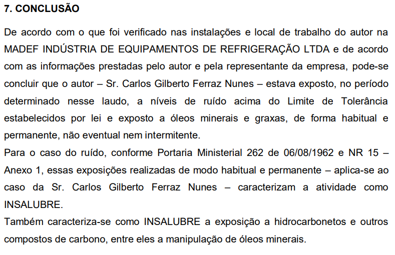 Elaborados os laudos, foi concluído que as atividades exercidas nas referidas empresas eram sujeitas a ruído acima dos limites tolerados/óleos minerais e graxas, conforme trechos dos laudos que seguem (eventos 61, LAUDOPERIC1, 63, LAUDOPERIC1, 64, LAUDOPERIC1 e 65, LAUDOPERIC1), conforme trechos que seguem, respectivamente: