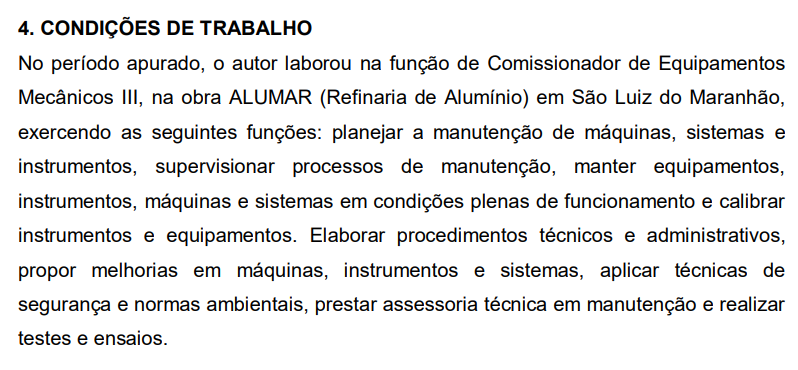 No caso, diante da similaridade das atividades desenvolvidas nas/nos funções/cargos de aprendiz, auxiliar de manutenção, ajudante de mecânico/auxiliar de departamento de peças, mecânico de manutenção, mecânico ajustador, mecânico industrial III e técnico mecânico, foi determinada a realização de perícia direta na empresa MADEF S.A INDÚSTRIA E COMÉRCIO, bem como que as conclusões do laudo pericial estendidas às empresas infracitadas, para avaliação das condições do labor: