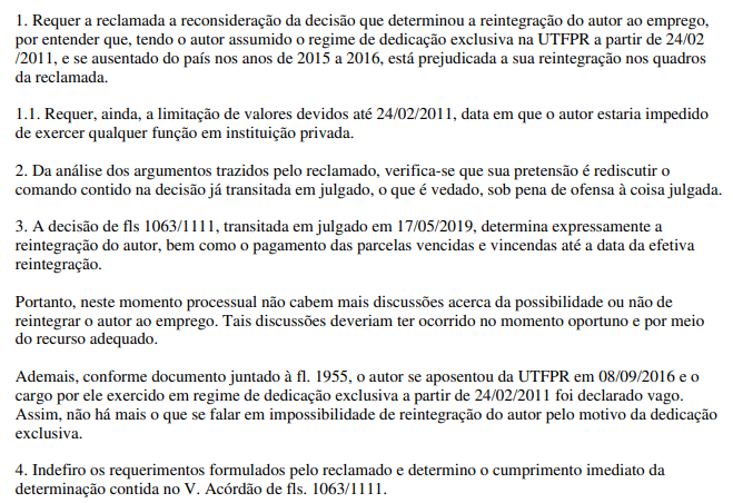 O julgamento foi mantido pelo TST quanto à reintegração (Evento 1, OUT15, fl. 297).