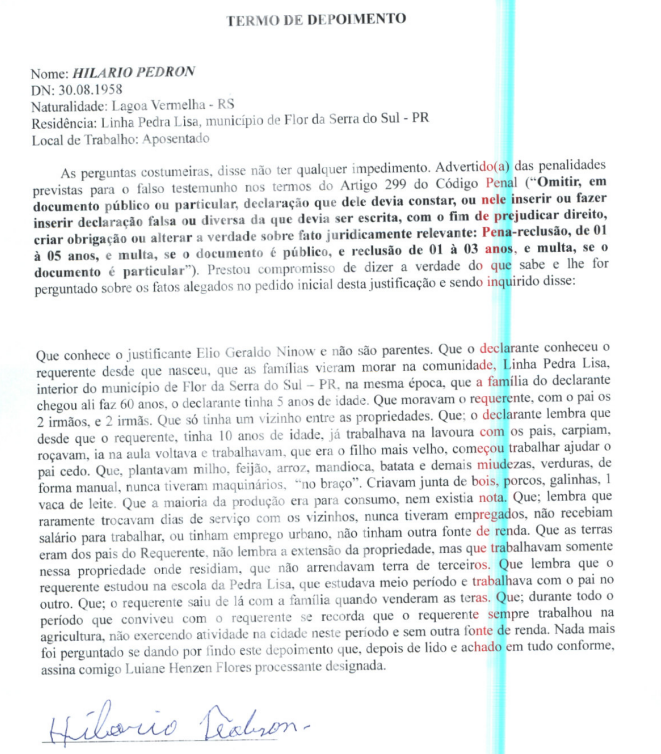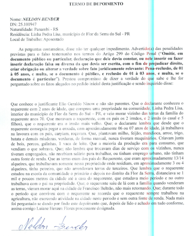 c) Certidão de nascimento de Maximino Ninow, irmão do requerente, na qual consta que os pais exerciam a profissão de agricultores, ano de 1976;