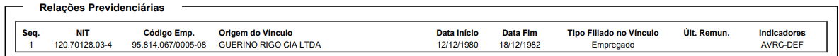 Ademais, requereu sea reconhecido o vínculo urbano na empresa Guerino Ringo & Cia. Ltda, de 12.12.1980 a 18.12.1982.