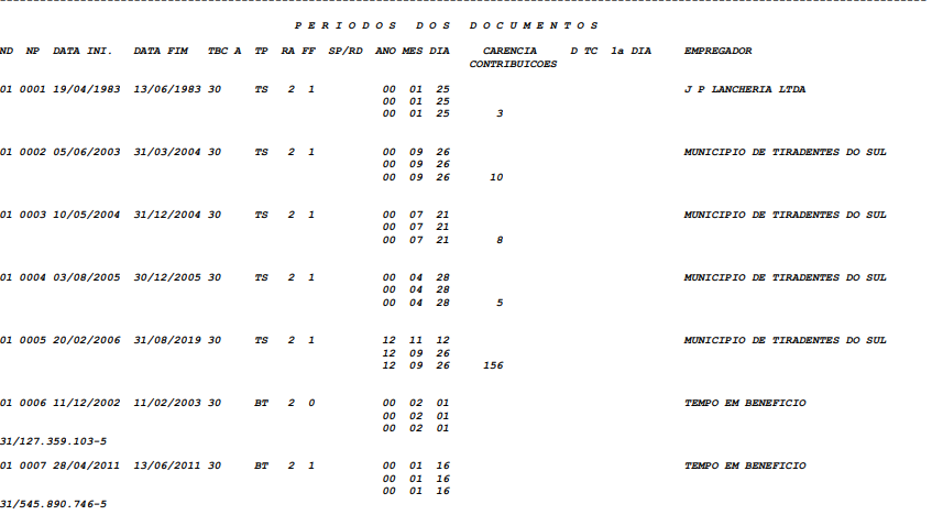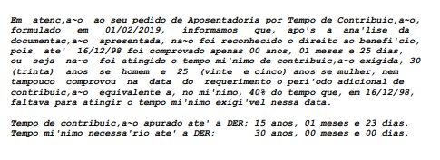 | Espécie | Aposentadoria por Tempo de Contribuição |