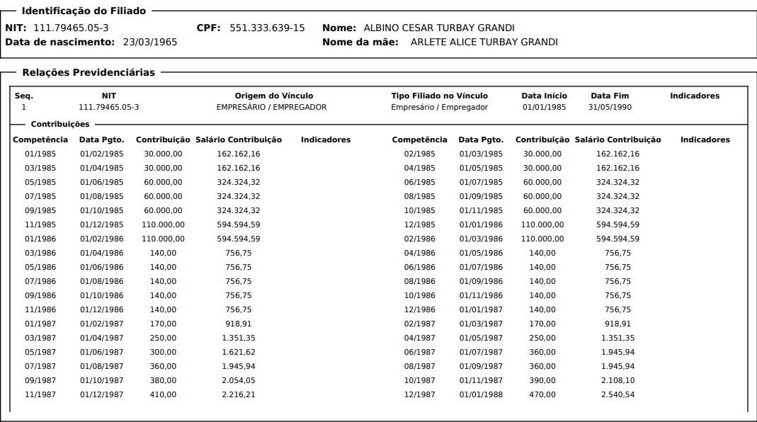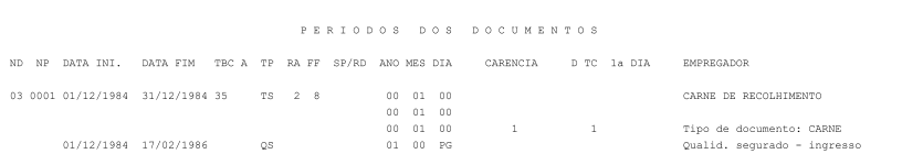 COMPETÊNCIA 12/1984 - REGISTRO NO CNIS