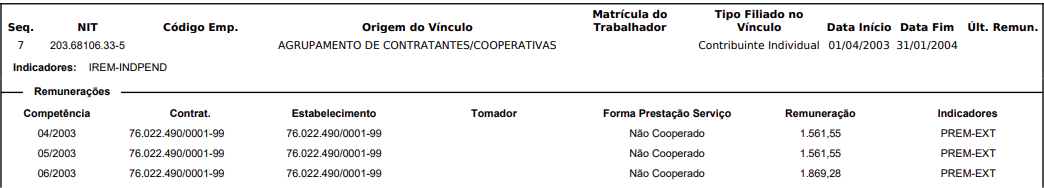 Conforme CNIS, no período de 01/04/2003 a 31/01/2004 o autor efetuou recolhimentos como contribuinte individual prestador de serviços junto ao Município de Morretes/PR: