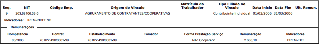 Conforme CNIS, no período de 01/03/2006 a 31/03/2006 o autor efetuou recolhimentos como contribuinte individual prestador de serviços junto ao Município de Morretes/PR: