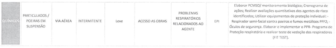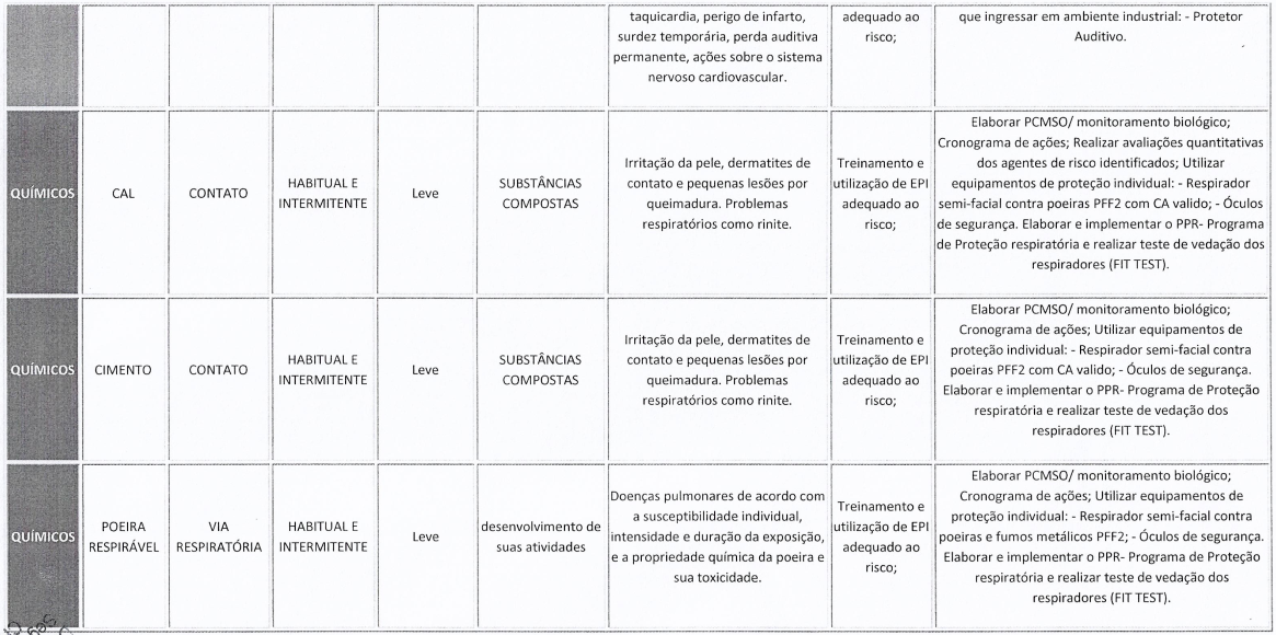 Notificada judicialmente, a empresa, atualmente denominada G. Azevedo Prestadora de Serviços Ltda, juntou aos autos os PPRAs base de 2020 e 2021, arrolando os seguintes agentes nocivos ( e ):