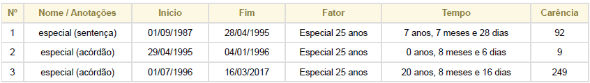 No caso em análise, os períodos controversos de atividade laboral exercidos em condições especiais estão assim detalhados: