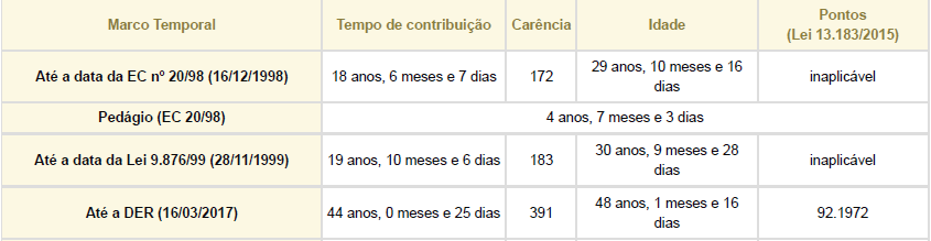 Em 16/03/2017 (DER), o segurado tem direito à aposentadoria integral por tempo de contribuição (CF/88, art. 201, § 7º, inc. I, com redação dada pela EC 20/98). O cálculo do benefício deve ser feito de acordo com a Lei 9.876/99, com a incidência do fator previdenciário, uma vez que a pontuação totalizada (92.20 pontos) é inferior a 95 pontos (Lei 8.213/91, art. 29-C, inc. I, incluído pela Lei 13.183/2015).