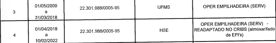 - De 01/04/2018 a 22/10/2019: foi readaptado no almoxarifado de EPI's, passando a exercer as atividade de entrega e controle dos equipamentos de proteção individual e uniformes.