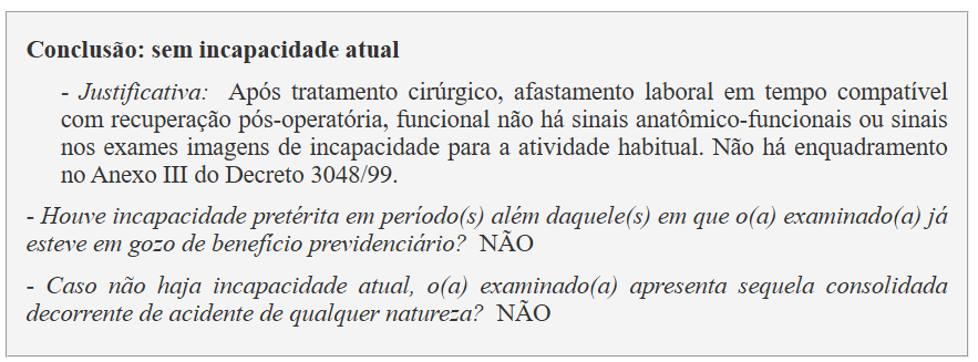 Todavia, registrou o expert não haver incapacidade atualmente, conforme excerto que segue: