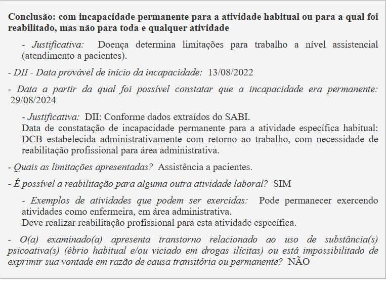 No laudo pericial produzido judicialmente (evento 24), o expert concluiu que a parte autora está incapacitada de forma permanente para a atividade habitual ou para a qual foi reabilitada, mas não para toda e qualquer atividade, fazendo jus ao benefício de auxílio por incapacidade temporária e à reabilitação profissional. Transcrevo as conclusões do laudo, por elucidativas: