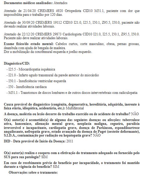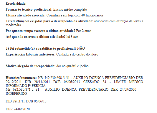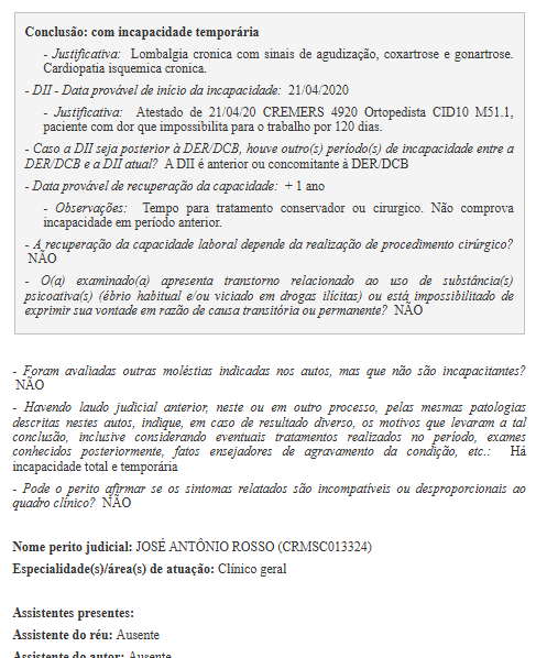 A partir da perícia médica realizada em 17/02/2022 () por Médico Clínico Geral, é possível obter os seguintes dados: