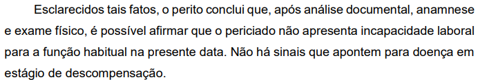 Observa-se, de igual forma, que o laudo pericial () se baseou na anamnese, no exame físico, assim como nos documentos médicos apresentados por ocasião do exame e os acostados aos presentes autos, não havendo razão, portanto, para que a perícia seja desconsiderada.