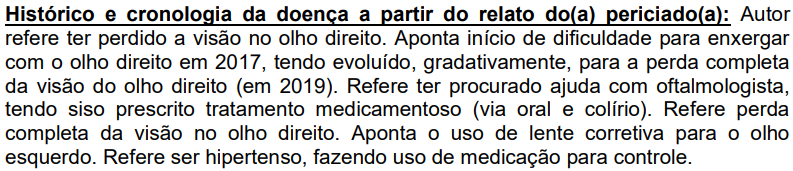 Todavia, não há comprovação de que a perda da visão no olho direito decorra de acidente de qualquer natureza.