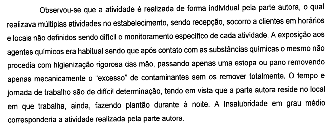 Assim, mesmo que a sujeição aos hidrocarbonetos aromáticos não fosse permanente, em decorrência de outras funções intrínsecas à gestão do estabelecimento, é possível concluir que a exposição era, ao menos, habitual. Lembrando que a prova pericial concluiu pela exposição habitual e não-intermitente ao agente químico.