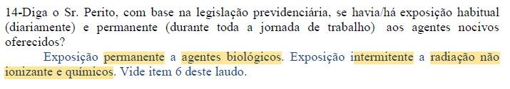 Por fim, a alegação de unilateralidade da prova, uma vez que produzida a pedido do requerente, é mitigada não apenas pela responsabilidade técnica do profissional que analisou a situação laboral como também, no caso, pela própria natureza das funções do médico, as quais reconhecidamente consistem no contato direto com o organismo dos pacientes.