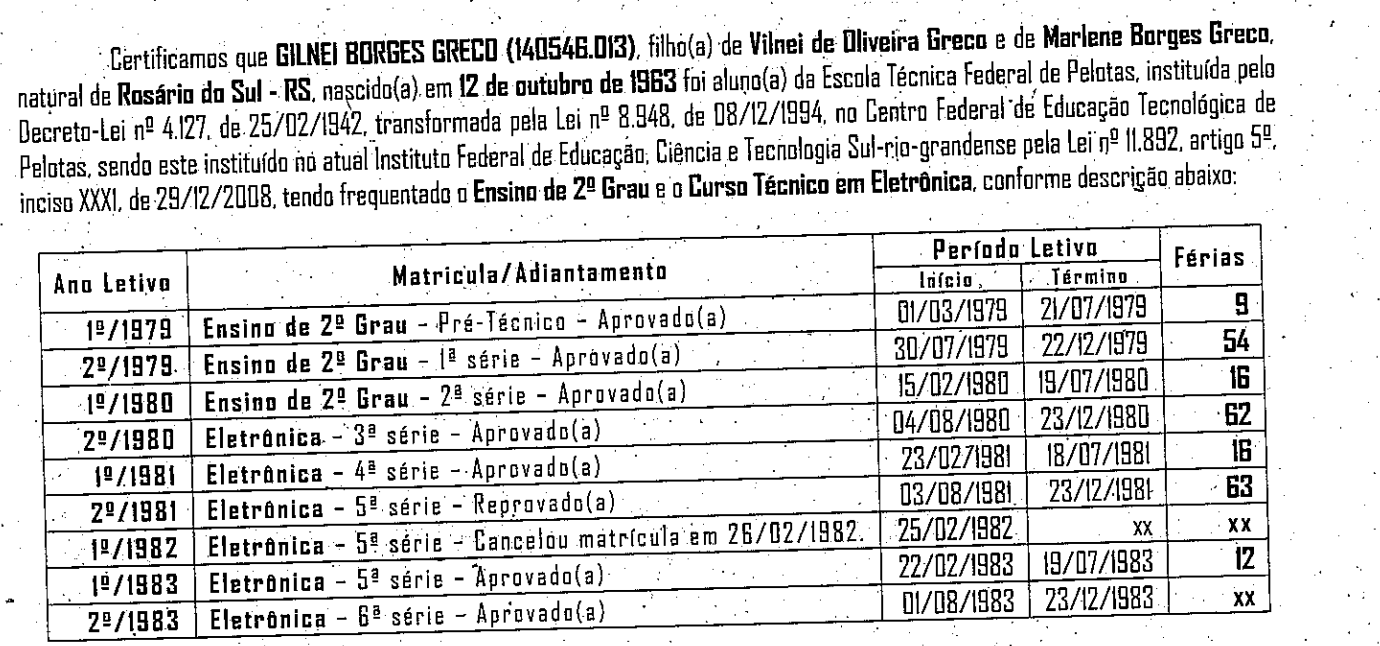 No caso, o autor trouxe aos autos certidão de tempo escolar emitida pelo IFSul - Instituto Federal de Educação, Ciência e Tecnologia Sul-rio grandense, referente ao período do segurado como aluno no curso técnico em eletrônica (ev. ):