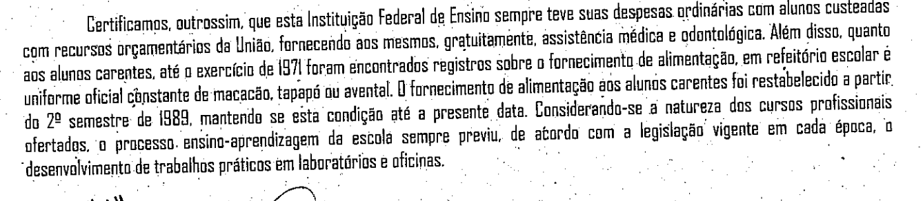 Ademais, no que tange à alimentação e fornecimento de uniforme, destaco que o documento afirma que, em relação aos alunos carentes, encontrou-se registros nas bases informacionais do instituto até 1971 e a partir do 2º semestre de 1989. No meu sentir, tal dado não exclui, de per se, a conclusão de que outros insumos fossem fornecidos aos no interregno ou que há apenas ausência de registro de fornecimento de alimentação e uniformes aos alunos.