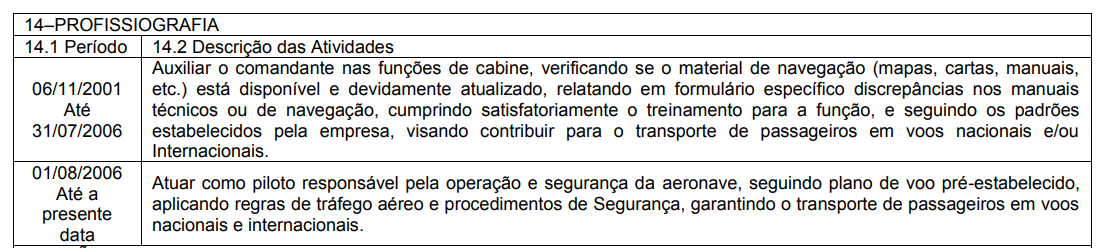 Dessa forma, está comprovado que o autor exerceu atividades de copiloto e de piloto a bordo de aeronaves comerciais na aviação civil durante essa contratualidade.
