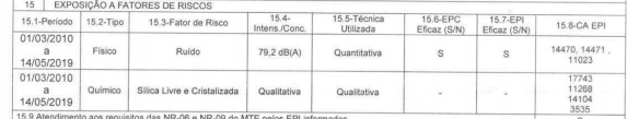 No lapso subsequente, o PPP () demonstra a exposição à sílica livre cristalizada, agente classificado como cancerígeno para humanos (Grupo 1 da LINACH, CAS nº 014808-60-7). Em razão de seu potencial cancerígeno, a caracterização da especialidade prescinde de análise quantitativa de concentração e da verificação da eficácia do EPI, bastando a constatação da exposição habitual e permanente. A jurisprudência consolidada desta Corte, em especial o entendimento firmado no IRDR Tema 15 do TRF4, é firme no sentido de que o uso de EPI não afasta o reconhecimento da especialidade em casos de exposição a agentes cancerígenos.