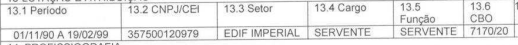 Cargo/função e Setor: Servente, no setor Fabricação de Cerâmica |