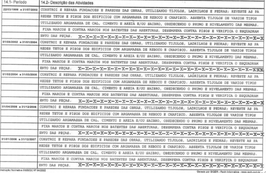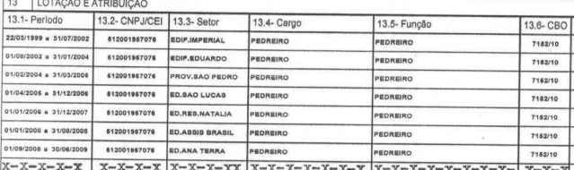 Período de 22/03/1999 a 30/06/2009 – Pedreiro