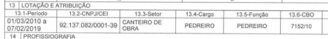 Período de 01/03/2010 a 20/05/2019 – Pedreiro