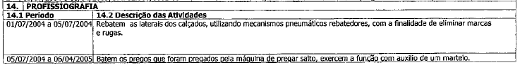 01/07/2004 a 06/04/2005 | Hidrocarbonetos aromáticos (colas, solventes etc.) | - | - | - | não | sim |