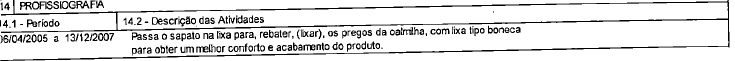 06/04/2005 a 13/12/2007 | Hidrocarbonetos aromáticos (colas, solventes etc.) | - | - | - | não | sim |