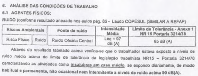 Consta, ainda, laudo similar (), de perícia realizada na empresa Copesul, que também funciona dentro do Polo Petroquímico, por similaridade às empresas Monjapi Ltda (inativa - ), Momentum Engenharia Ltda e Montreal Engenharia Ltda (invativa - ), relativa às funções der mecânico, no setor operacional e setor de manutenção mecânica.