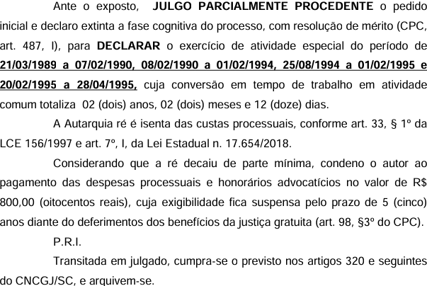 A sentença de origem não reconheceu a especialidade, fundamentando que: