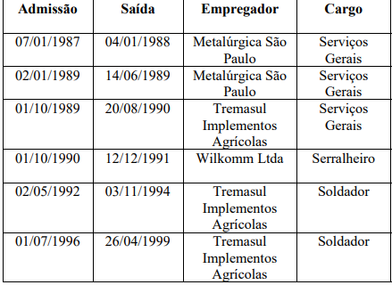 Com relação aos períodos em que há a anotação na CTPS nas empresas Metalúrgica São Paulo e Tremasul Implementos Agrícolas, como sendo a função do autor como "Serviços Gerais", foram inquiridas testemunhas, as quais confirmaram que o autor efetivamente era de serralheiro/soldador - ev. . Assim, a atividade considerada como desenvolvidas nas referidas empresas será de Serralheiro/Soldador.