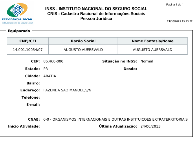 Aliás, a informação de fl. 21 da CTPS corrobora nesse sentido, uma vez que não informa cadastramento para fins de FGTS relativamente ao primeiro contrato. Da mesma forma, as matrículas CEI lançadas no CNIS do , fl. 34 para identificação dos empregadores confirmam início das atividades a elas vinculadas somente a contar de 24/06/1993: