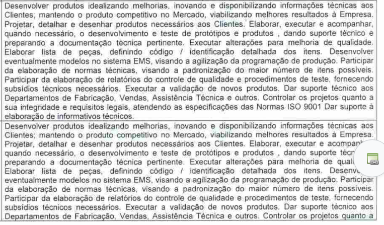 De 01/07/2004 a 22/07/2019, para a função de projetista, a profissiografia está assim detalhada no PPP:
