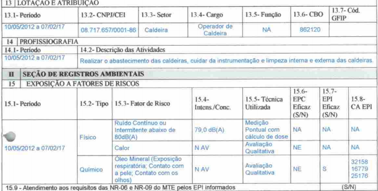 "(...) Para o período de 10/05/2012 a 07/02/2017 consta na CTPS a contratação do autor, como operador de caldeira, pela LOGUS Indústria e Transporte de Produtos Químicos Ltda. Na fase administrativa, o autor apresentou PPP emitido pela empresa com o seguinte teor: