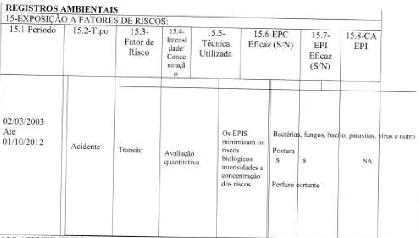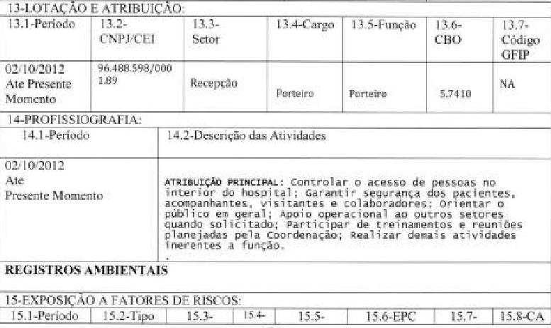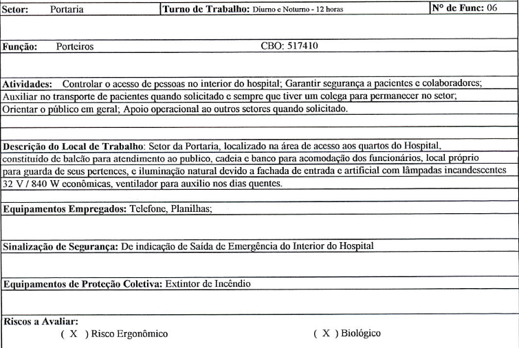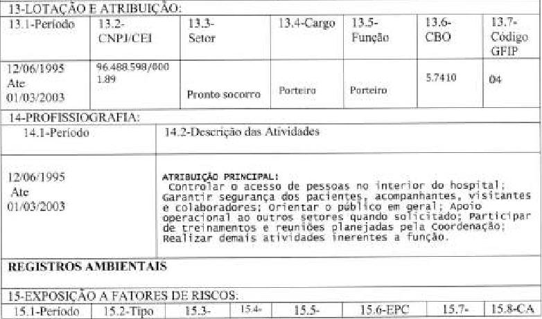 Como se observa, apesar do autor ter trabalhado numa instituição hospitalar, tanto no cargo de porteiro quanto de motorista, o contato com os agentes biológicos não inerente às tarefas desempenhadas, de acordo com a profissiografia.