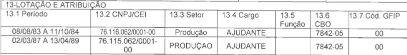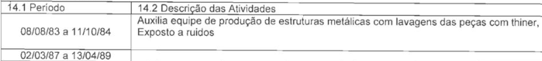 - 02/12/1985 a 04/02/1987 (categoria profissional: item 2.5.3, Decreto 83.080/79)