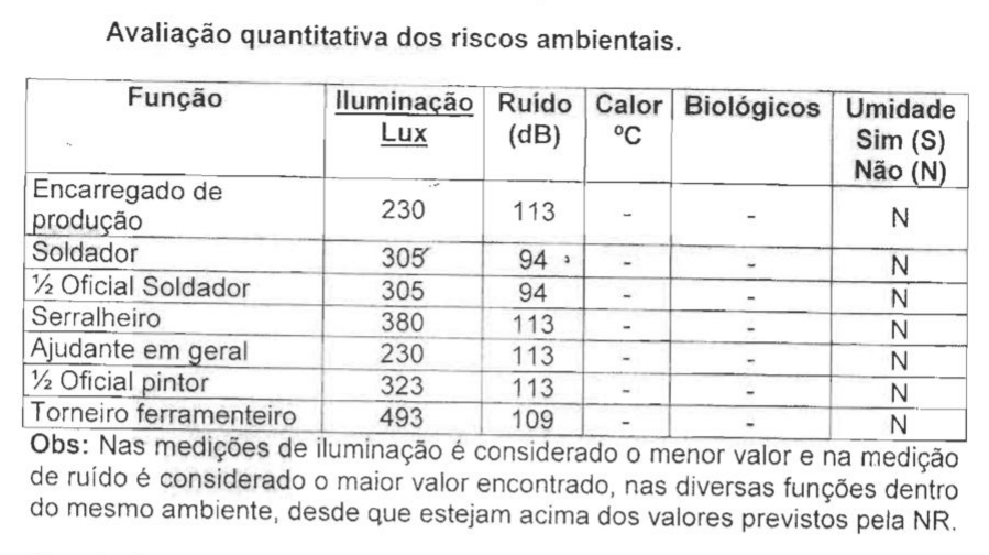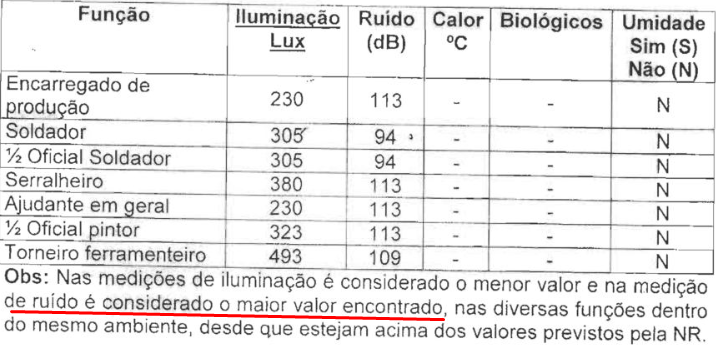 O laudo técnico apresentado confirma a presença de ruído de 113 dB(A) (ev. 21, doc. 3, p. 26). No entanto, o documento informa que o referido nível de ruído se refere ao maior valor encontrado no setor de produção, e não a média normalizada.