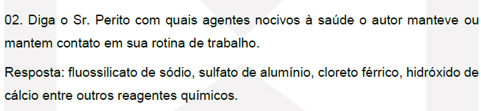 A exposição aos demais agentes químicos (cal hidratada, sulfato de alumínio, permanganato de potássio, etc.) igualmente enseja o reconhecimento do caráter especial da atividade, com base nos códigos 1.2.9 e 1.2.11 do Quadro Anexo do Decreto n. 53.831/64, e 1.2.7 e 1.2.11 do Anexo I do Decreto n. 83.080/79. Nesse sentido: