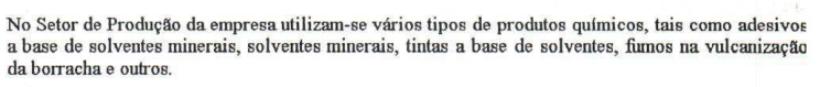 Embora o PPP mencione a exposição apenas a ruído abaixo dos limites de tolerância, o laudo ambiental () da empresa indica a exposição a agentes químicos no setor de produção:
