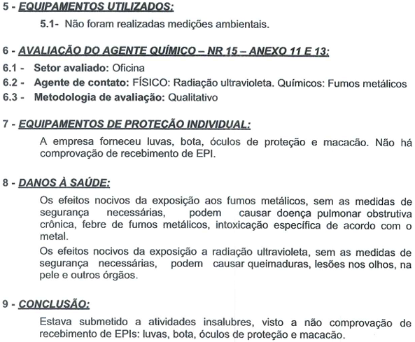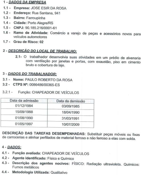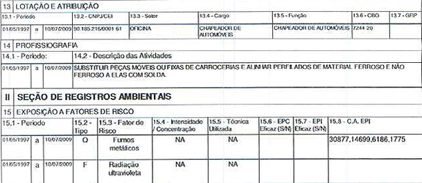 O LTCAT assim descreveu suas atividades: "Substituir peças móveis ou fixas de carrocerias e alinhar perfilados de material ferroso e não ferroso a elas com solda".