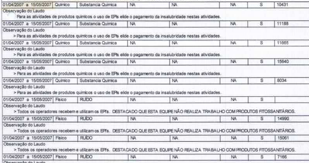 Período Trabalhado | Enquadramento | Limites de Tolerância |
