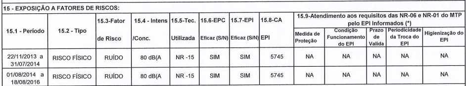 III – A partir de 1º de janeiro de 2004, para a aferição de ruído contínuo ou intermitente, é obrigatória a utilização da técnica/metodologia contida na Norma de Higiene Ocupacional 01 (NHO – 01) da FUNDACENTRO ou na NR-15, que reflitam a medição de exposição durante toda a jornada de trabalho, vedada e medição pontual, devendo constar no PPP o nível de ruído em Nível de Exposição Normalizado – NEN ou a técnica/metodologia “dosimetria” ou “áudio dosimetria”.
