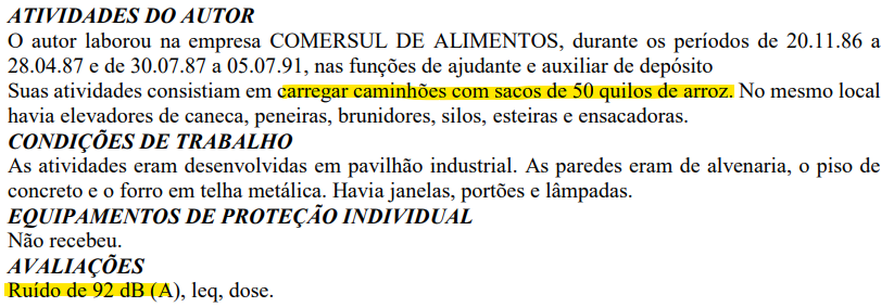 Ademais, é possível o reconhecimento da especialidade da atividade, mesmo que não se saiba a quantidade exata de tempo de exposição ao agente insalubre, sendo necessária, apenas, a demonstração de que o segurado estava sujeito, diuturnamente, a condições prejudiciais à sua saúde (TRF4, AC 5011416-14.2018.4.04.7108, 5ª Turma, Relator HERMES SIEDLER DA CONCEIÇÃO JÚNIOR, julgado em 17/06/2025).